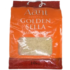 “Aani Golden Sella Basmati Rice, known for its long grains and golden hue, is perfect for creating fluffy, aromatic rice dishes. Ideal for biryanis and pilafs.”